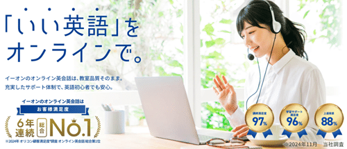イーオンオンライン英会話は、全国に英会話教室を展開する「英会話イーオン」が運営するオンライン英会話サービスです。1973年創業と50年以上にわたり培った指導ノウハウをもとに、24時間365日いつでも受講できる環境を整えています。